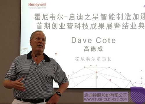 霍尼韋爾董事長高德威(Dave Cote),啟迪控股總裁袁桅,霍尼韋爾智能建筑與家居集團大中華區和亞太區以及安全與生產力解決方案集團大中華區及印度地區總裁李寧,啟迪控股副總裁、啟迪漕河涇(中山)科技園董事長安紅平與上百位投資人共同見證創業團隊的精彩蛻變。