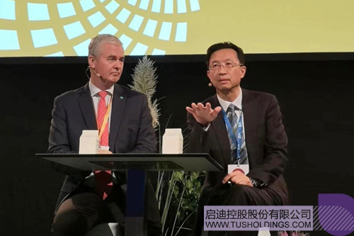 啟迪控股常務(wù)副總裁陳鴻波(右)在首屆P4G哥本哈根峰會(huì)上發(fā)言