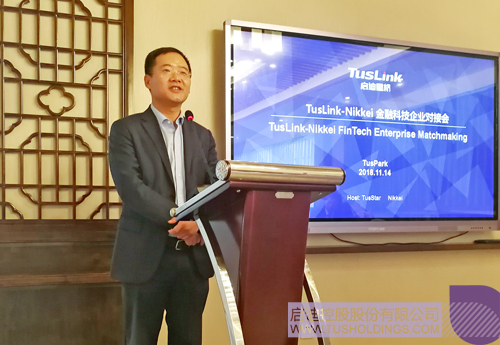 11月14日,TusLink-Nikkei金融科技企業對接會在北京清華科技園成功舉辦,王濟武董事長和日本經濟新聞社常務董事平田喜裕出席活動并致辭。本次活動是由啟迪之星與日本經濟新聞社(以下簡稱“日經”)共同舉辦。