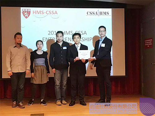 留學(xué)新加坡國立大學(xué)、英國牛津大學(xué)胡博士,從易寒開先生手中接過本次大賽最高獎(jiǎng)項(xiàng),“哈佛醫(yī)學(xué)院華人啟迪愛創(chuàng)獎(jiǎng)”