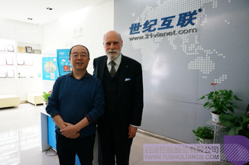 啟迪數(shù)字集團聯(lián)席董事長、世紀互聯(lián)創(chuàng)始人兼董事長陳升和溫頓?瑟夫博士(右)合影