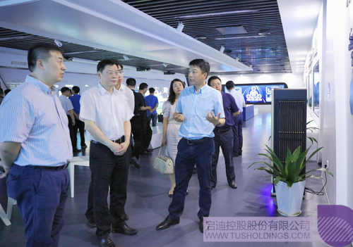 趙長山董事長(左二)一行參觀考察啟迪控股數字展廳